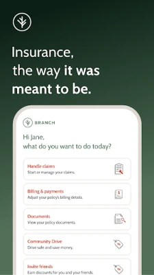 Branch® is an insurance company that uses data and technology to make insurance easier to buy and less expensive for all. With Home, Auto, Umbrella, Renter’s, Motorcycle, Boat, and ATV coverages available, we make it easy to get the great coverage you need with the savings you deserve.