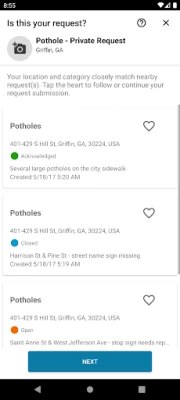 Welcome to the NEW City of Griffin Mobile app, an all-in-one tool for communicating your service needs and staying connected to your community. This unique platform allows you to report non-emergencies within your neighborhood, such as street light outages, water leaks, potholes, stray animals, etc., that are quickly directed to the appropriate department for resolution, all at your fingertips. You can upload a photo to provide more details and receive progress updates on your submissions along with way. The app also provides information on free events for the family, community meeting reminders, and more. By downloading the new City of Griffin app, you contribute to improving your community while staying connected with just a tap.