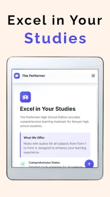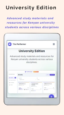 The Performer is an innovative educational platform designed to empower Kenyan students through accessible, high-quality learning resources. Offering two specialized editions, it caters to both high school and university learners: the High School Edition provides comprehensive notes with audio materials across all subjects for Forms 1-4, while the University Edition delivers specialized resources including Law and Nursing past papers for advanced exam preparation.