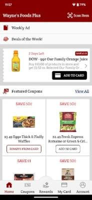 Wayne’s Food Plus app is the easiest way our loyal customers can receive savings every time they shop! Simply browse the coupons available, “Add to Card” the one’s you want, and scan your phone at checkout.